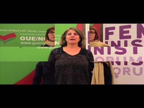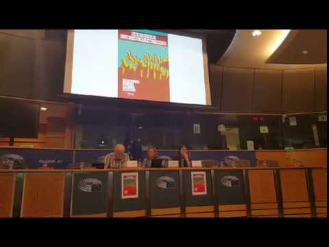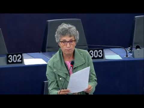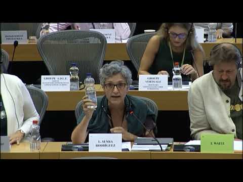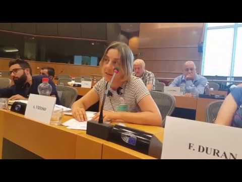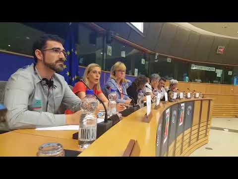 Ángela Vizoso, concelleira de Cangas, reivindicando o dereito á auga no Parlamento Europeo